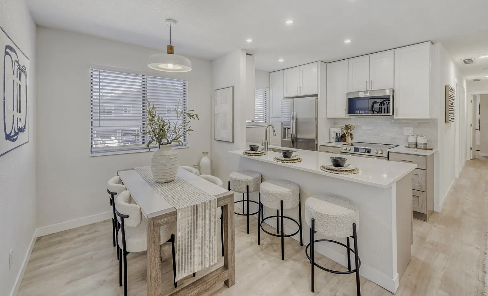 Incredible FULL REMODEL! 3 bed 2 bath townhome all on one (1) level on the 2nd floor! Unbelievable, newly created Open Concept with all new LED lighting throughout and Sherwin Williams high end paint throughout! You get Factory Warrantied, All new appliances, including stainless steel kitchen package with a larger 36″ wide side-by-side refrigerator with ice/water, a high end slide in range, with convection microwave and water reducing, efficient dishwasher. High Level Quartz Designer Countertops blend design seamlessly. Also comes with all new higher end washer and dryer (side-by-side!)*All new kitchen cabinets with Designer Dover White Uppers and Designer Dover Driftwood lowers to complement the all designer-selected finishes! Nordic Oak Waterproof Luxury Vinyl Plank flooring, completely new doors, door jambs, handles, 5″ base trim, professionally painted, new modern sleek black electric fireplace that provides heat along with a gorgeous Coastal Bluff Marble Ledger stone wall (floor-to-ceiling) and 4″ mantel to warm up your new home! Both bathrooms have new, matching Designer Dover Driftwood vanities (same as kitchen lowers!), with kitchen-matching Level 3 Quartz Countertops, all new beveled mirrors, lighting, brand name Moen plumbing fixtures, designer-selected Courtland Sky porcelain tile, and XL shower niche with Diamond Pennny Glass Mosaic tile. Each closet has double racks for more storage, and the Primary Bedroom has not just double racks, but rack set at a height for your dresses and long coats! You have an open, 1 car garage-style parking, along with PLENTY of extra parking spots out front – there is always atleast 5 open spots! Fully serviced and cleaned furnace and newer water heater, and Air Conditioning too! All 2″ white window blinds throughout, custom lighting in each room – it has it all! Hurry, won’t last!